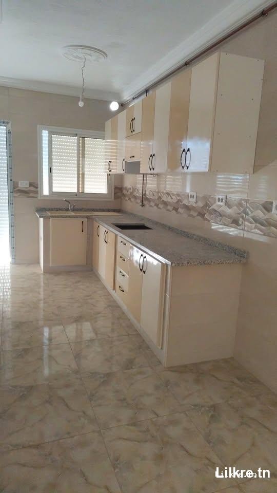 À louer un Appartement S+3 neuf à Bouhjar, Monastir Situé au 1er étage, équipé du gaz naturel.