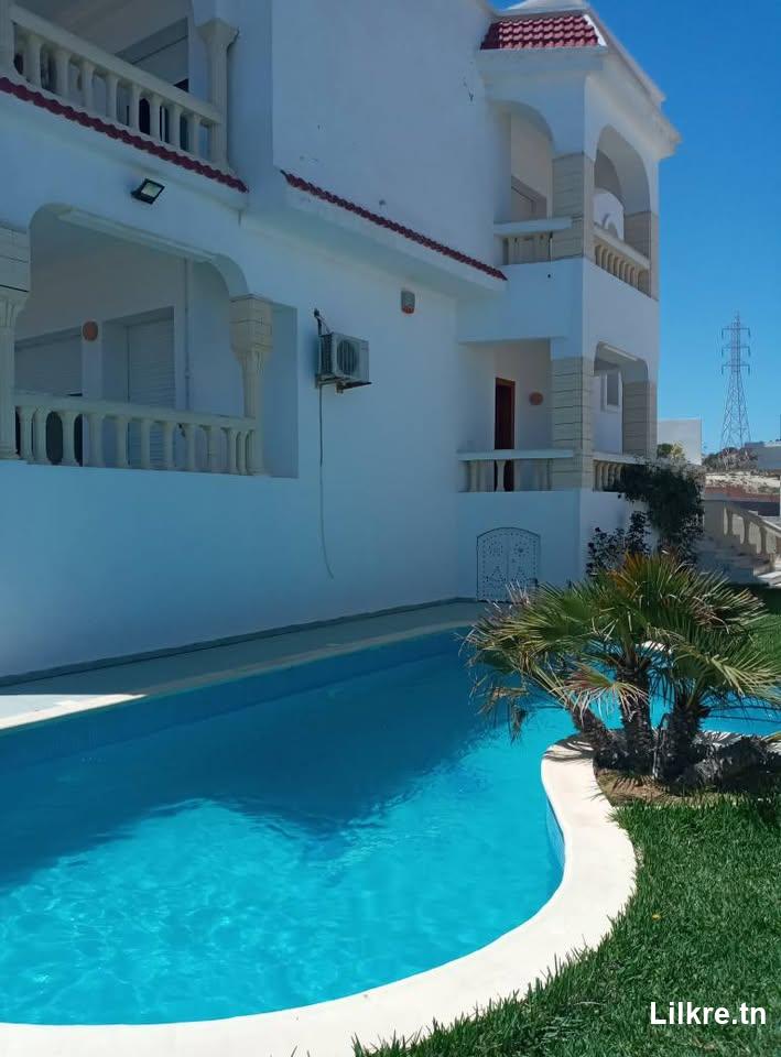 Spacieuse villa S+4 avec piscine, située à Hammamet Nord. NB: le prix affiché peut être modifié durant les hautes saisons.