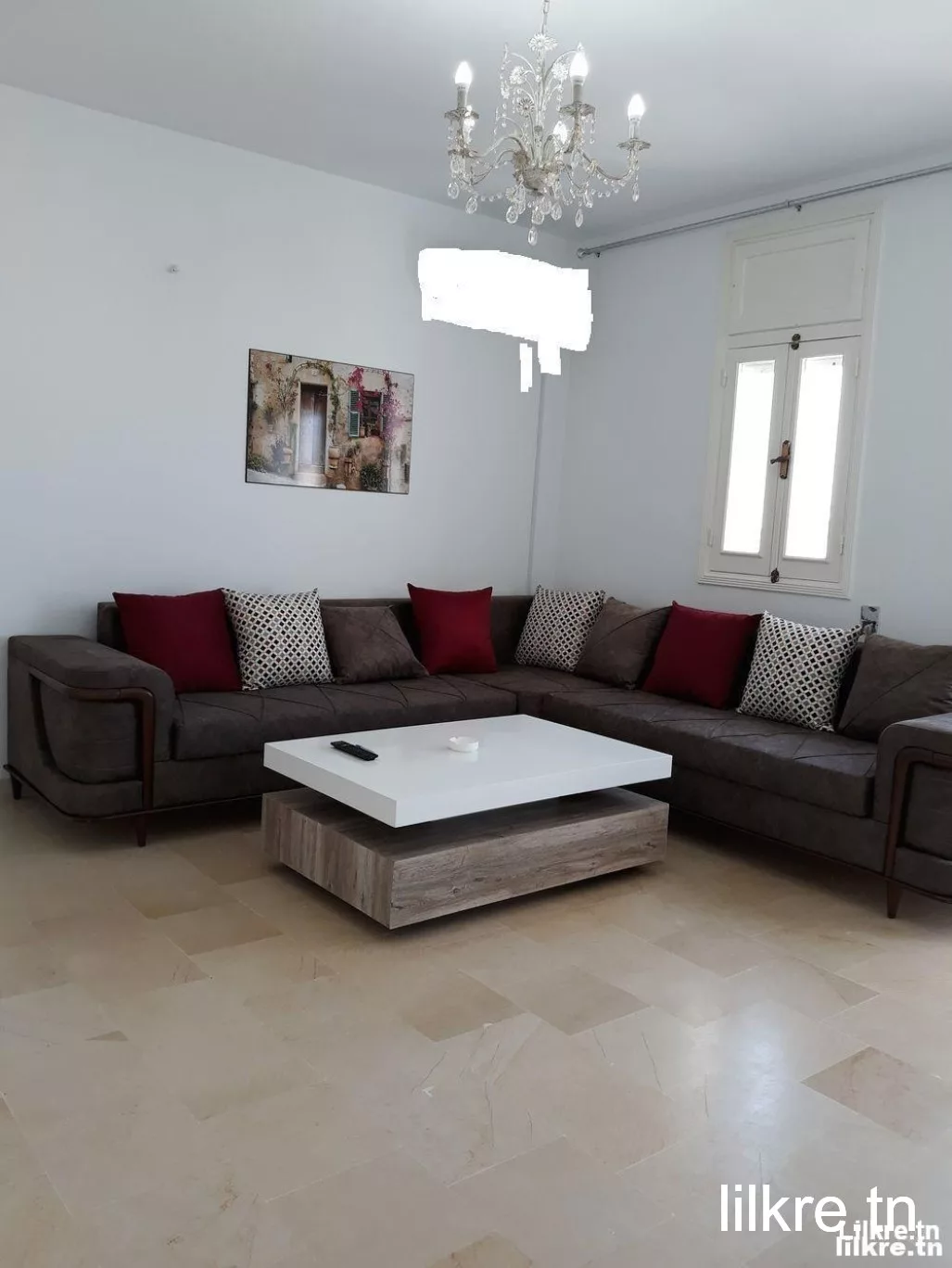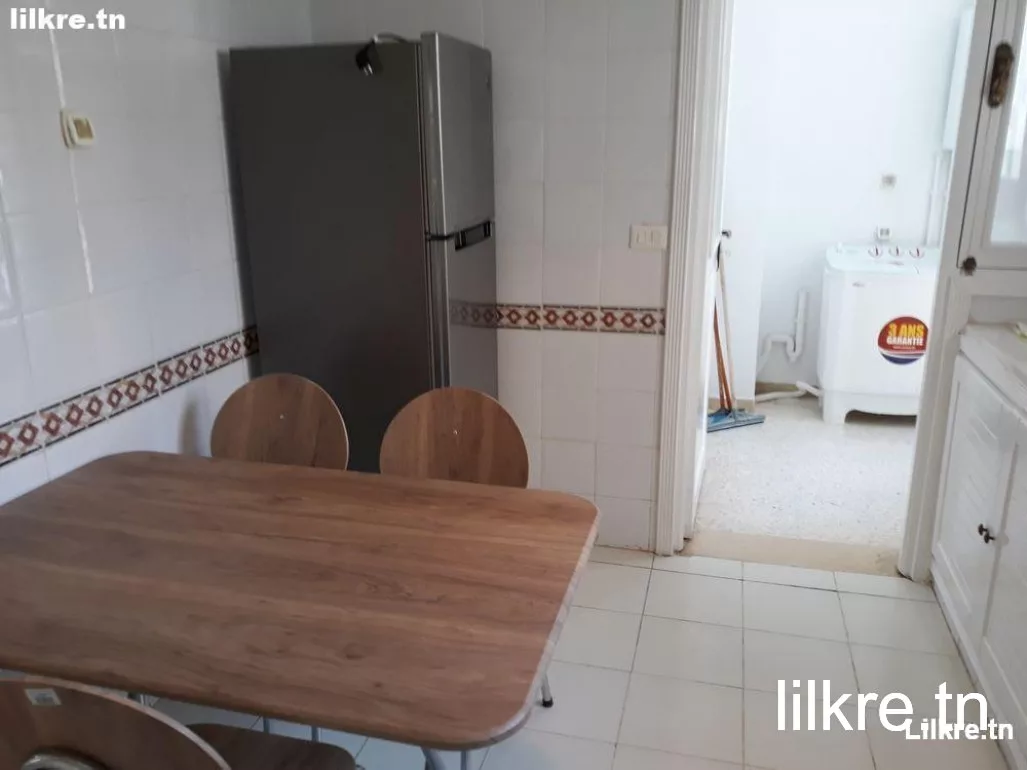 On met en location un appartement s+2 richement meublé, au 3 éme étage (block avec ascenseur) située à résidence Malika – Manouba, il se compose d’un grand salon lumineux ouvre sur un balcon couverte, deux chambres a coucher, cuisine équipée et salle de douche + salle d eau, séchoir, parking, climatisé (un seule climatiseur). en face de l’arrêt de métro Moncef Bey, l’emplacement sur google maps: 36.80484,10.09158. résidence très calme, gardée 24/24, vous pouvez y retrouver tout ce qu’il faut : supérette, kiosk (7amass), des boutiques, salon de coiffure, pressing, café, pizzeria…etc. Période du janvier jusqu’à juin Prix 85dt/par jour Location minimum 3 jours. NB: le prix affiché peuve être modifié durant les hautes saisons.