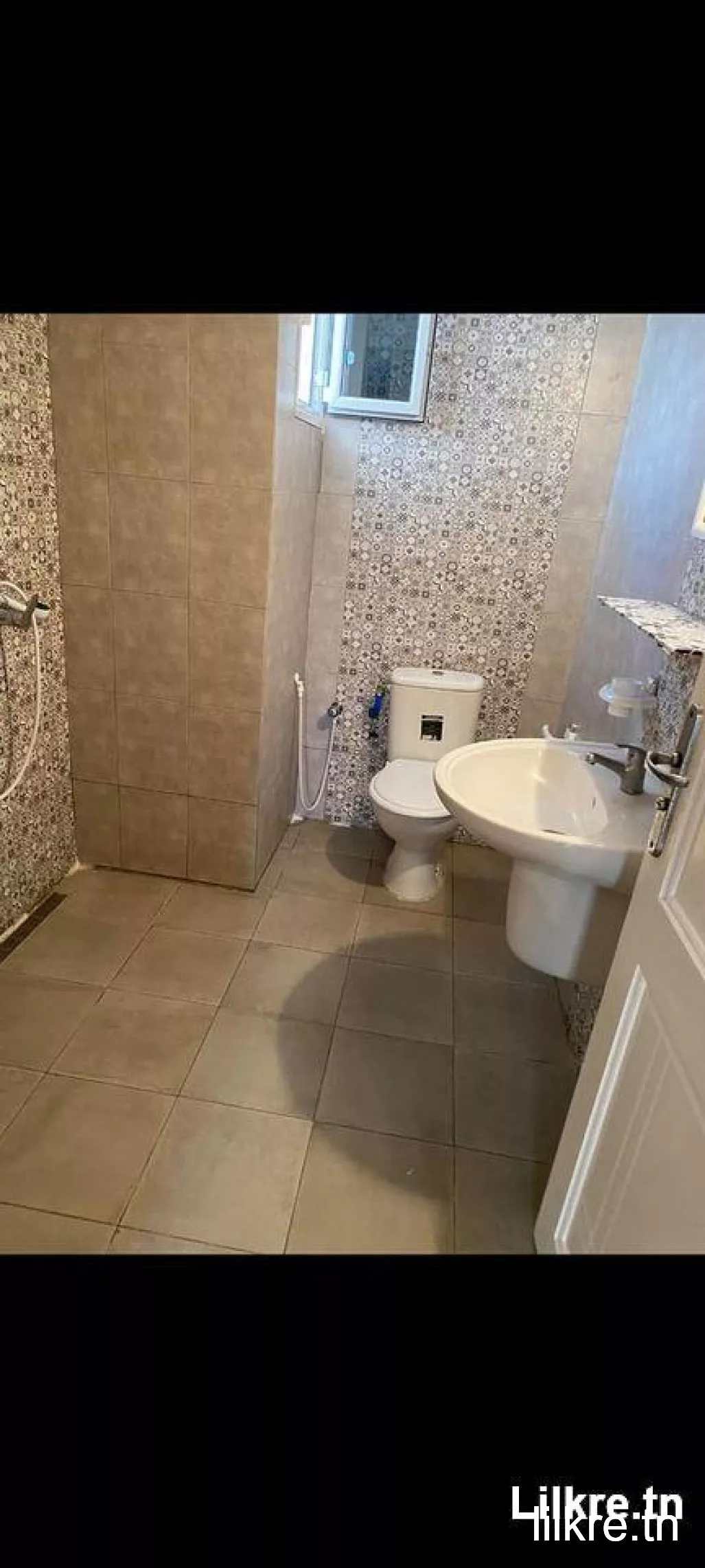 A louer un appartement S+2 au Rdc qui se trouve à el Mourrouj 2 avec entré indépendante sans gaz de ville salon 5/4 chambre parental 4.3/3.5 chambre enfant 3.5/3.3 cuisine 2.7/3.5 + un nouveau chauffe bain installé recement hall +balcon+ séchoir compteur eau + électricité sur relevé