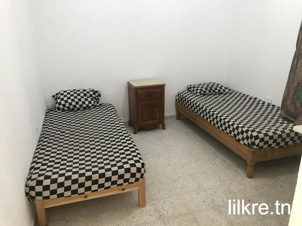 un appartement s+2 Une chambre pour 2 étudiants garçons est encore disponible. L’autre chambre est déjà louée. Appartement calme, propre, bien situé et équipé (cuisine, salle de bain, Wi-Fi). le lit 187 inclus l'eau 200 inclus l'eau et électricité au 3éme étage .rue ibn aby dhiaf les garçons seulement