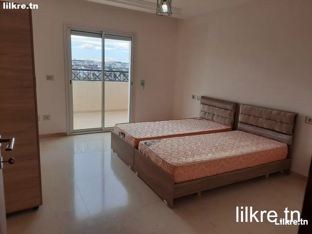 A louer un appartement s+1 bien meublée a manouba, au 6 éme étage avec ascenseur, immeuble nouveau construite, chauffage central et climatisé. zone très calme, 5 min de l’arrêt de métro Moncef bey (a pied). location par jour min 3 jours prix a 100 dt/par jour. NB: le prix affiché peuve être modifié durant les hautes saisons.
