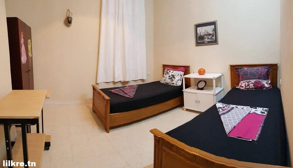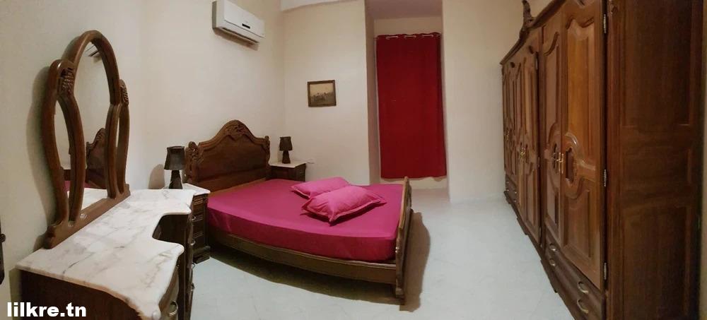 a louer un jolie appartement richement meublé au 1er étage d’un Villa, situé au cité olympique Tozeur, entre la zone touristique et l’aéroport, zone calme et sécurisée. Nb:Le prix sera échangeable la période haute saison (Juin- Juillet- Août).