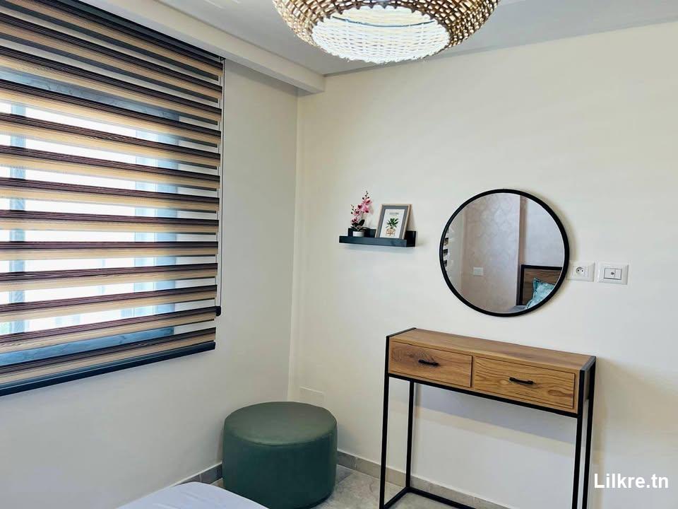 A louer Appartement s+1 haut standing bien équipé et meublé Location estivale Dans une résidence gardée Emplacement : Hammamet nord afh mrezga NB : le prix peut être modifié durant les hautes saisons.