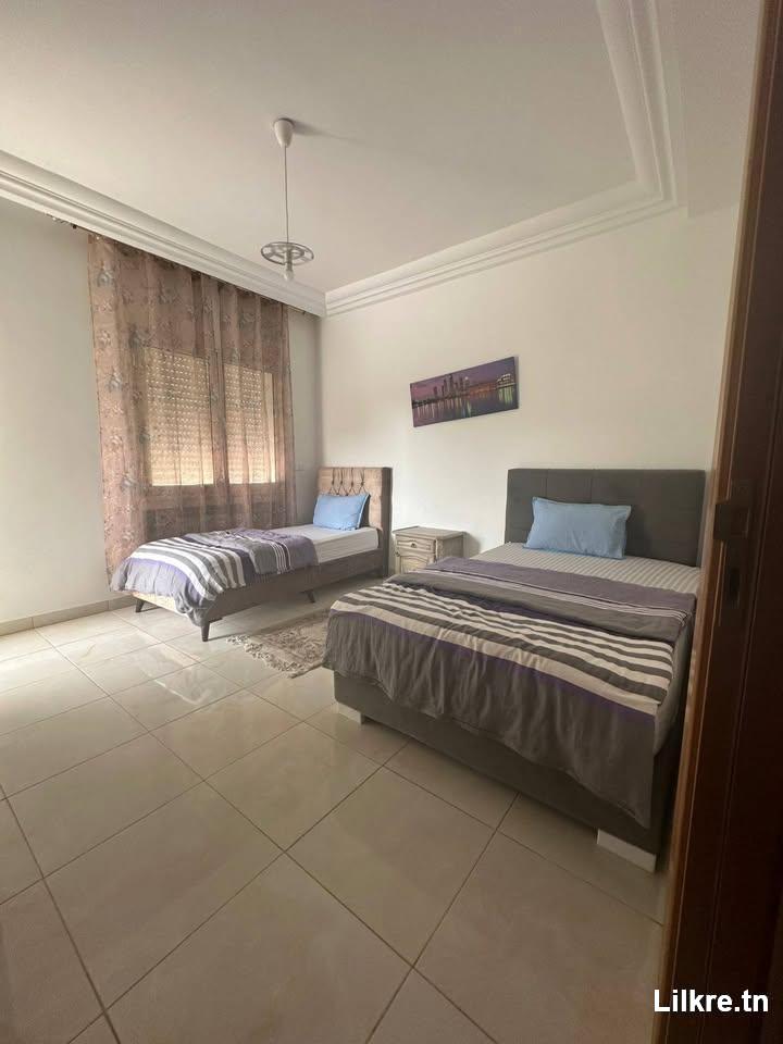 Appartement S+2 entièrement meublé, situé dans un quartier calme à Jardin de Carthage. Idéal pour un court séjour confortable. ✅ Quartier résidentiel et sécurisé ✅ Appartement propre et bien équipé ✅ Capacité : jusqu’à 4 personnes NB: le prix affiché peut être modifié durant les hautes saisons.