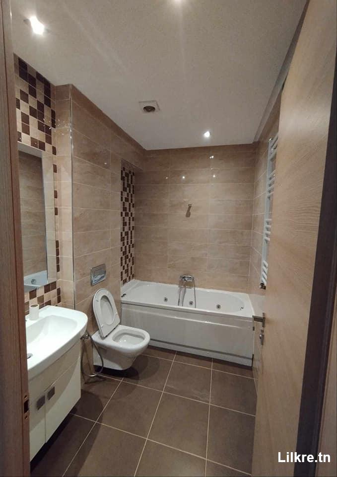 A louer un appartement S+2 haut standing sis à chotrana1 dans une résidence R+2, L'appartement est bien orienté et occupe le 2ème étage, La résidence est bien entretenue et bien gardée avec des caméras de surveillance , gardiens jours et nuits, Il est composé d'un : * un spacieux Salon lumineux avec une grande fenêtre. * Une salle d'eau invités. * Une Cuisine bien équipée plaque haute four(delta cuisine). * 2 chambres à coucher avec grands dressing Une salle de bain avec jacuzzi 3 climatiseurs Chauffage central Un abri voiture disponible NB : le prix de location inclus frais syndic.