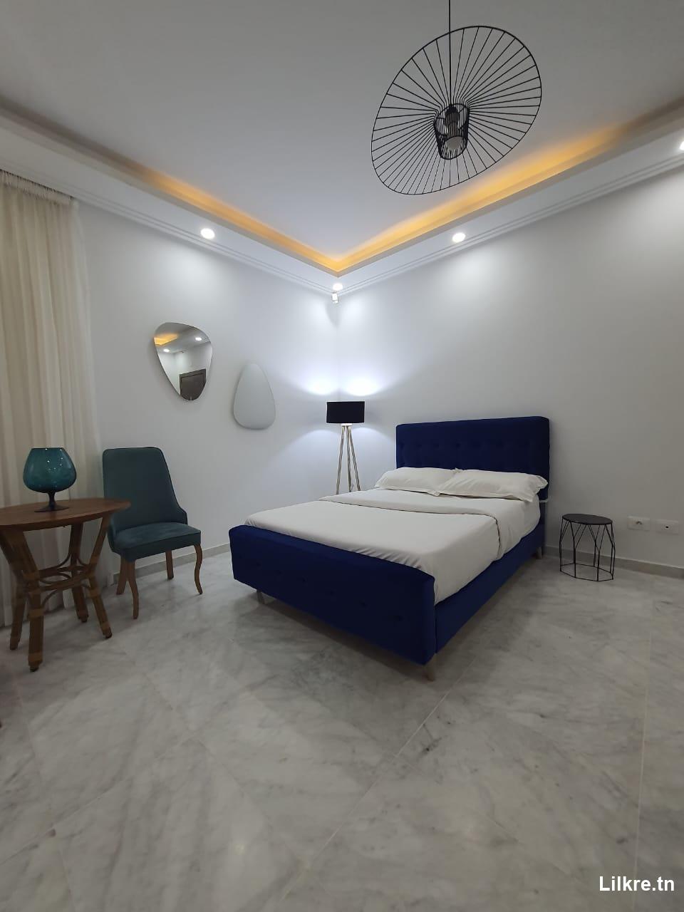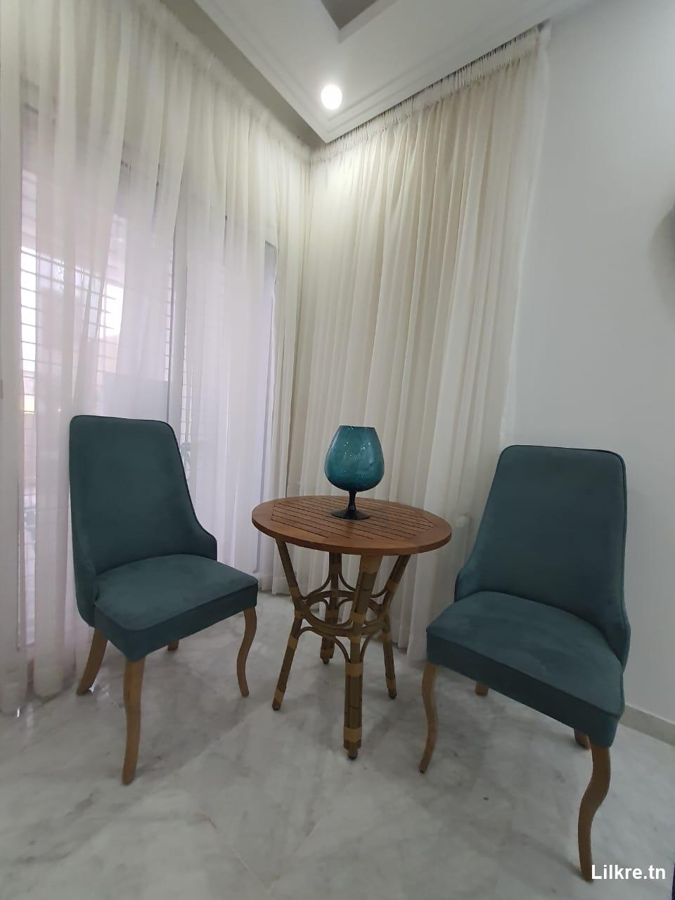 A louer un Appartement S+0 richement meublé qui se trouve à jardin de carthage. au 2 eme étage (avec ascenseur) climatisation et chauffage central. Nb: le prix sera échangeable la période haute saison(Juillet-Août).