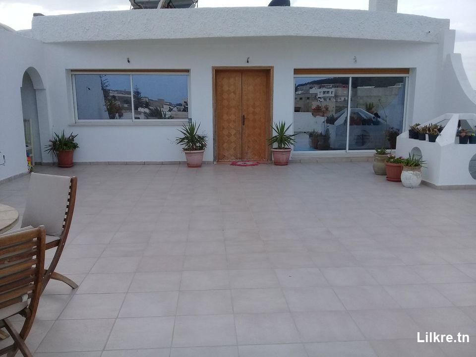A louer un Appartement S+3 qui se trouve à Mansoura Kélibia a 100 m de la plage avec terrace de 50m2 vue partiel sur la mer : bien équ...