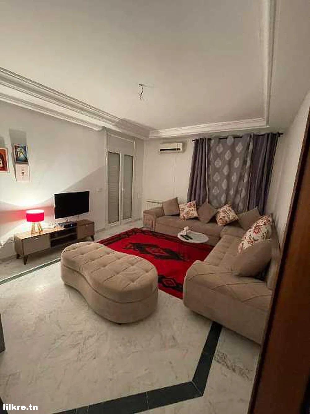 A louer un Appartement S+1 à Jardins de Carthage Richement Meublé près de toutes les commodité se compose: * un spacieux salon. * une...